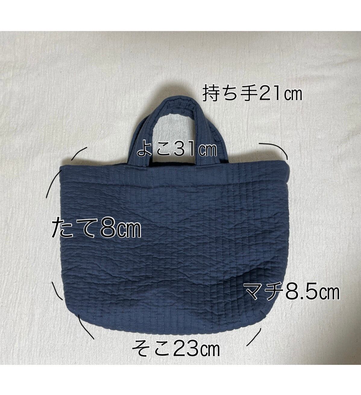 たて約18㎝、一番広い横31㎝、一番狭い横23㎝、マチ8.5㎝、持ち手21㎝