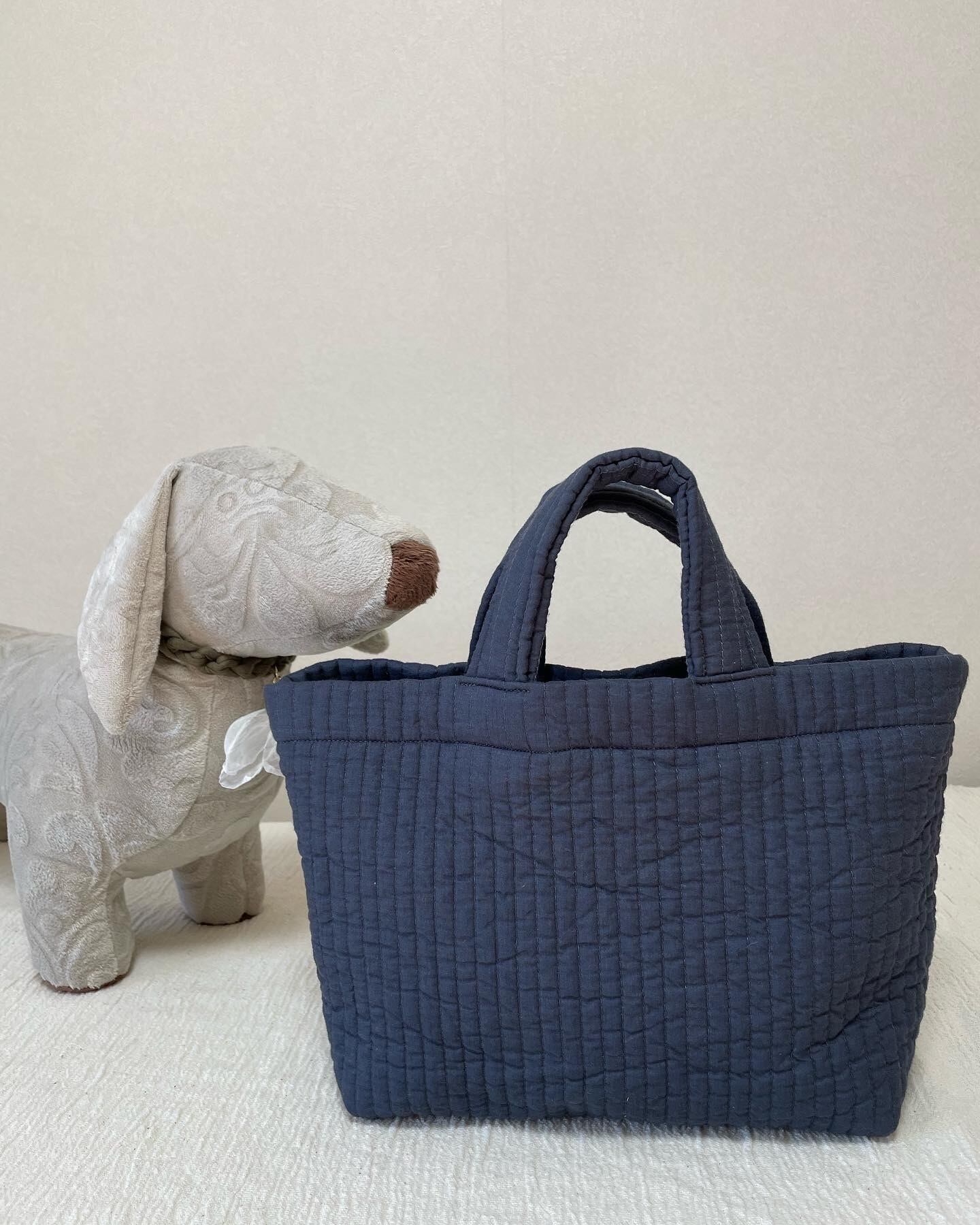 柔らかなイブル生地でお散歩に丁度良いサイズのヌビバッグをハンドメイドしました。